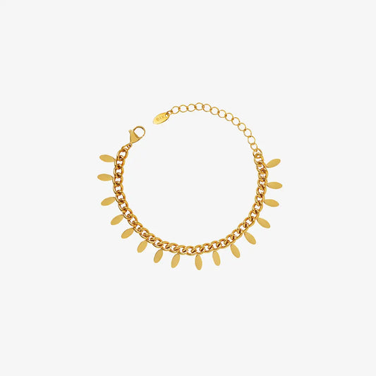 Titanium Steel Leaf Charm Bracelet – 18K Gold & Silver